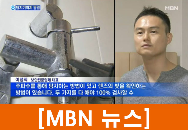 안녕하세요. 보안전문업체 프로정보통신입니다. 몰래카메라의 불안감이 높아지는 가운데 대책으로 탐지보안업체의 탐지기술이 소개됐습니다. MBN <뉴스> 인터뷰 내용중 일부사진